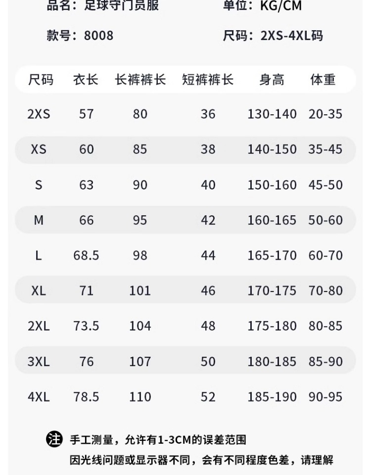 青少年/成年防冲撞门将服(套装)
